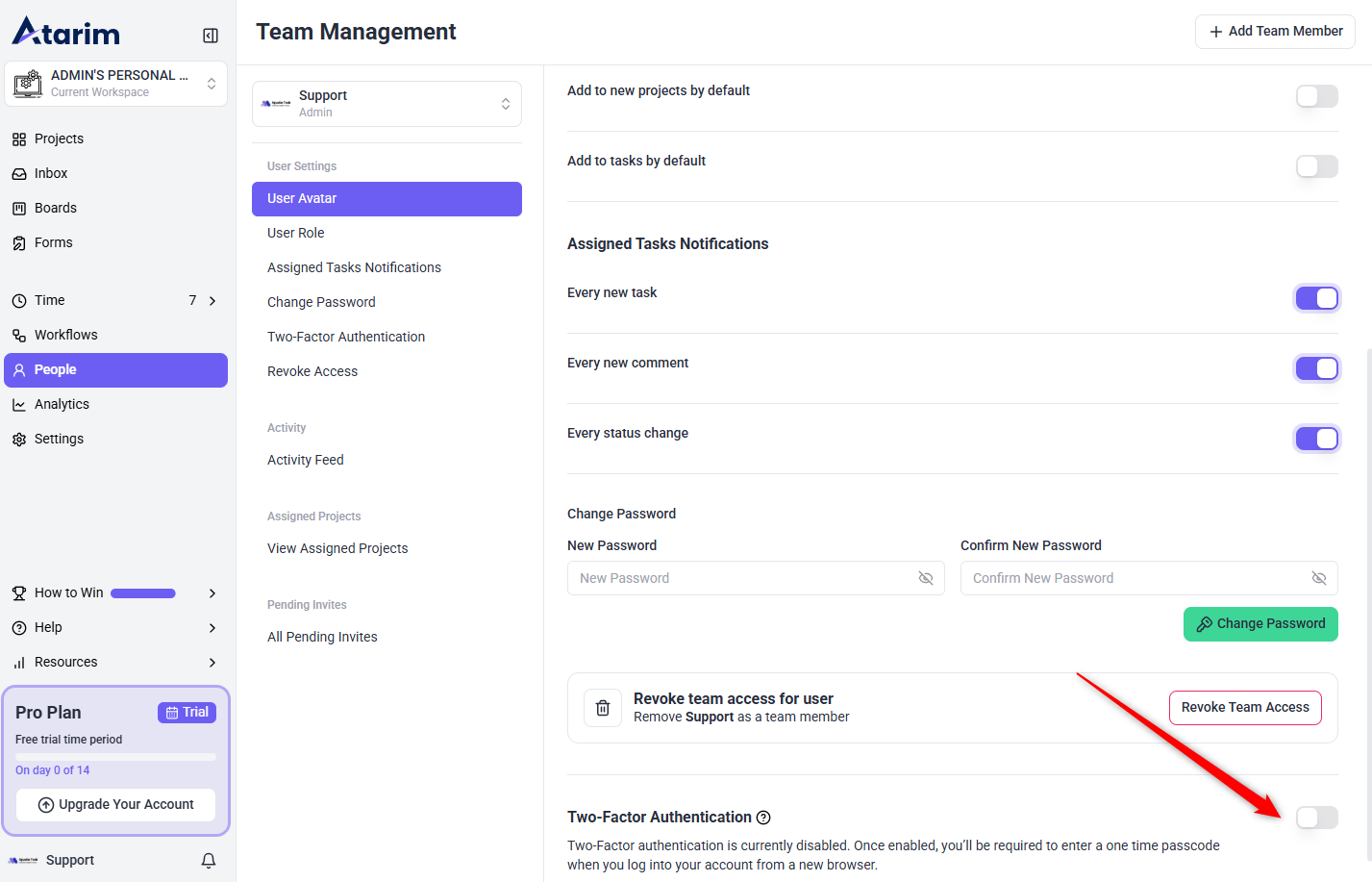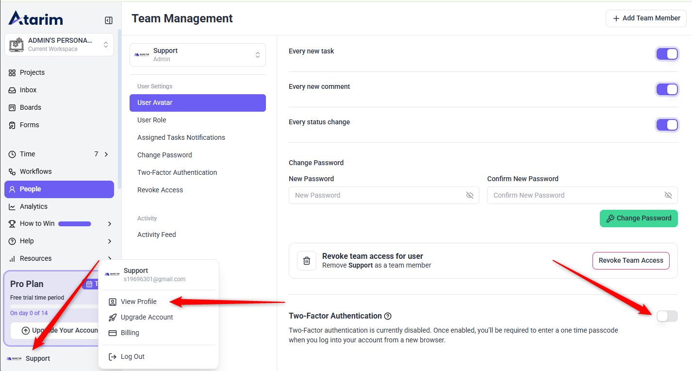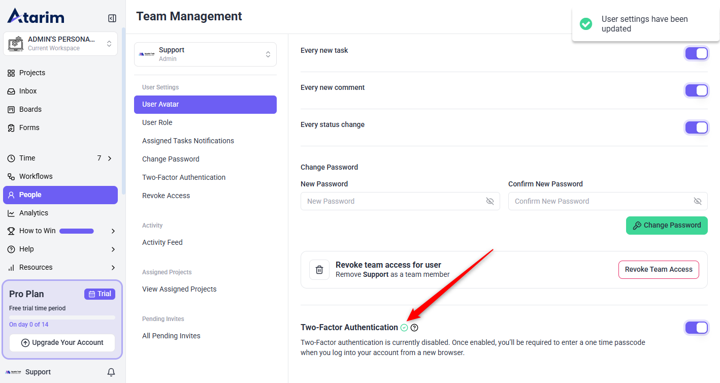 Secure your Atarim account with Two-Factor Authentication for enhanced protection.