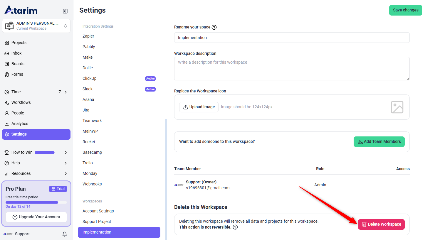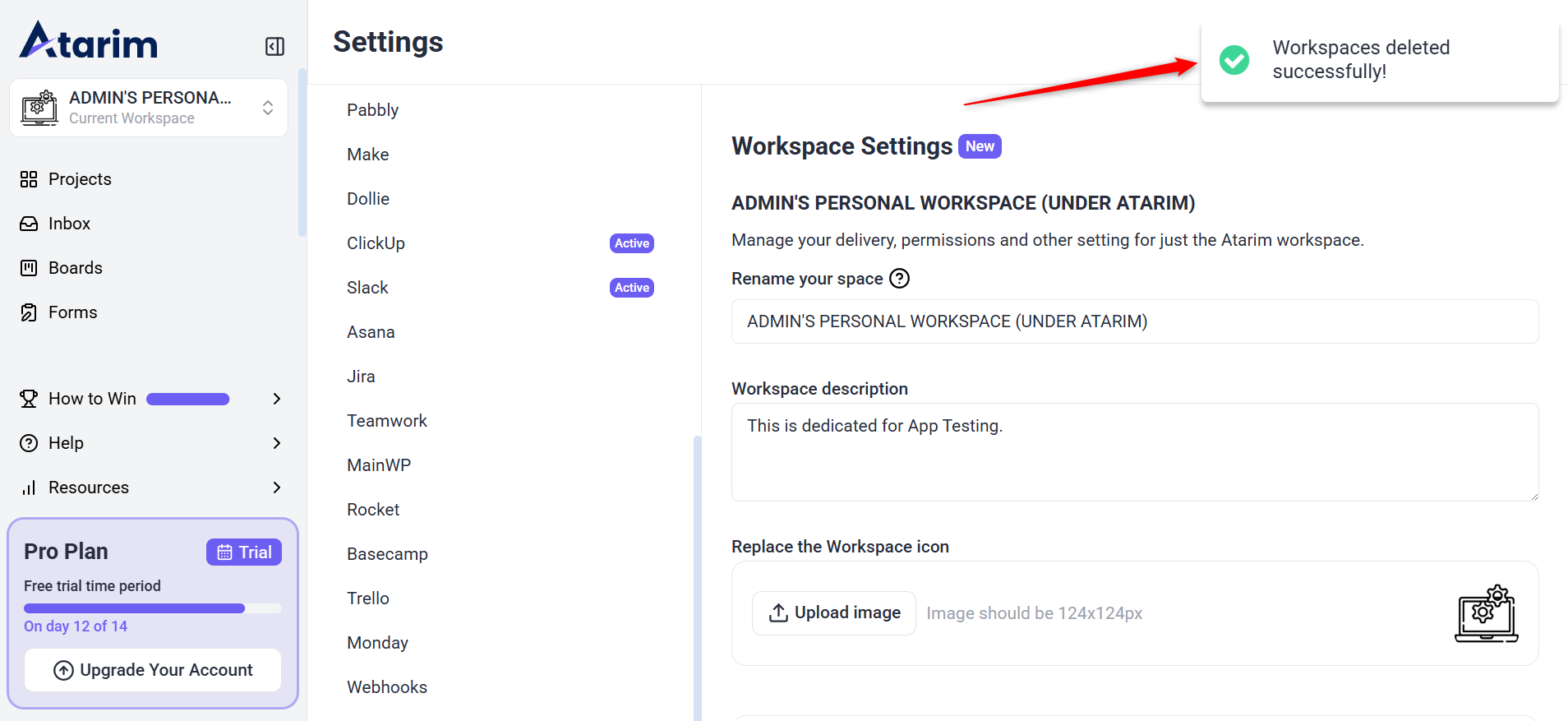 By following these steps, you can easily delete a workspace in Atarim, keeping your account organized and clutter-free.