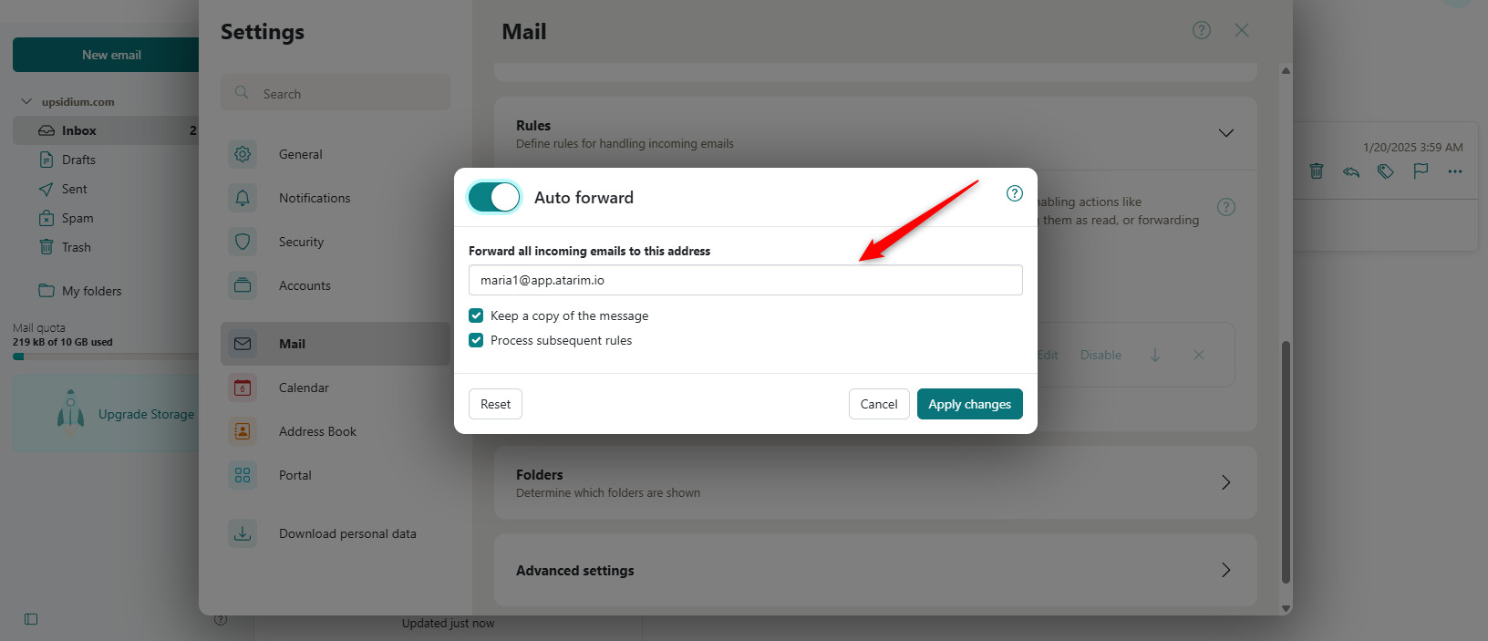 - Add your Atarim forwarding address (provided in the settings).