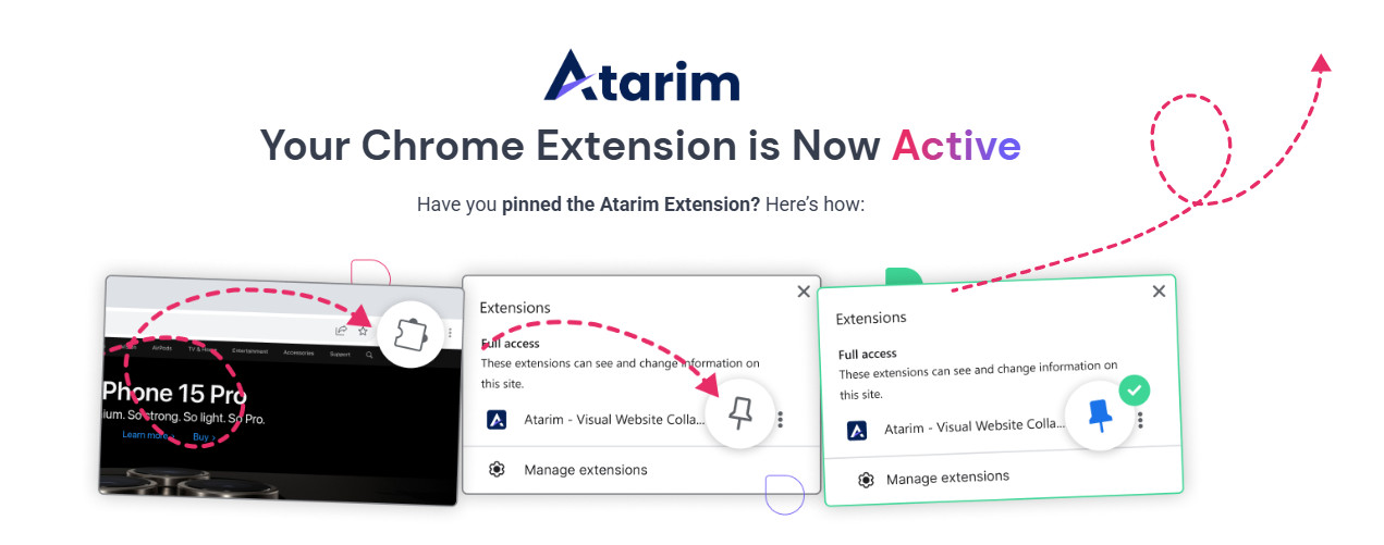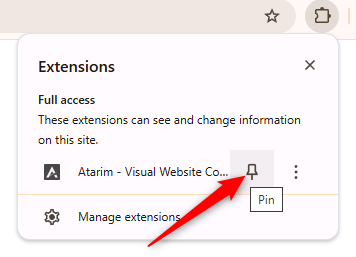 Tip: Pinned extensions appear directly in the toolbar so you can launch Atarim with a single click—on any page.