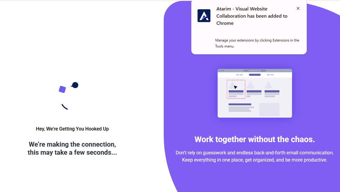 Once the extension is installed, it needs to connect to your Atarim workspace.
