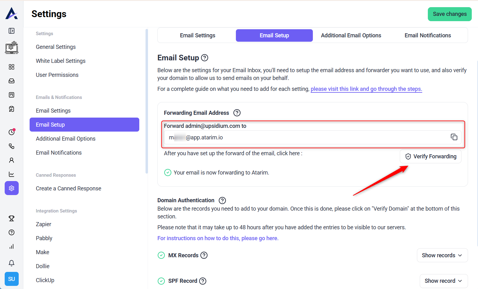 - Copy the Atarim Inbox email and set up forwarding into your personal email account.