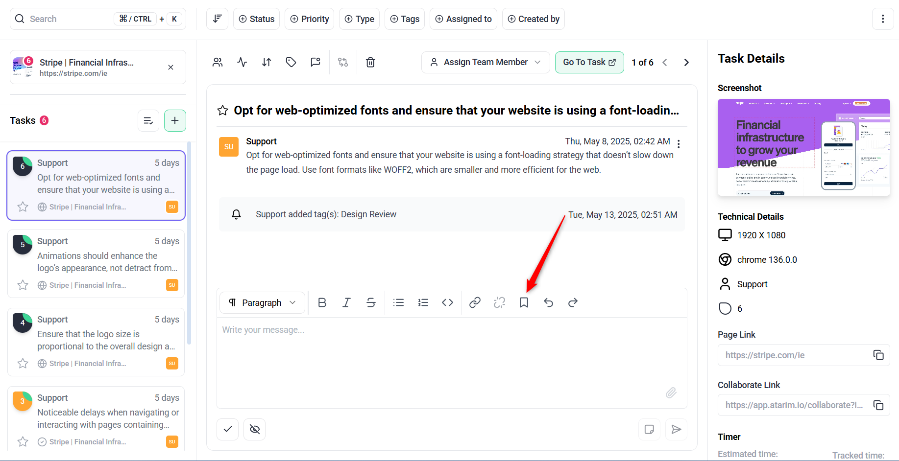 - Provides visual context for the task, ensuring clarity in reported issues or feedback.