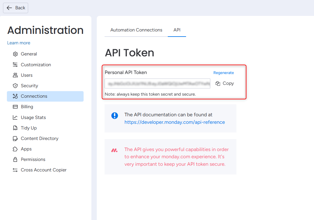 2. Retrieve Your Monday API Key