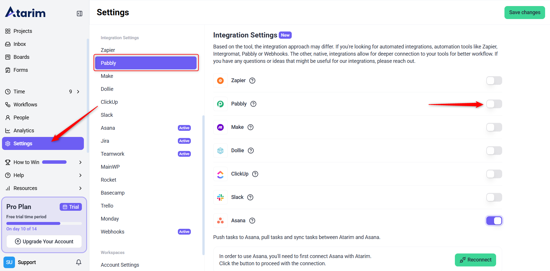 1. Enable the Pabbly Integration in Atarim