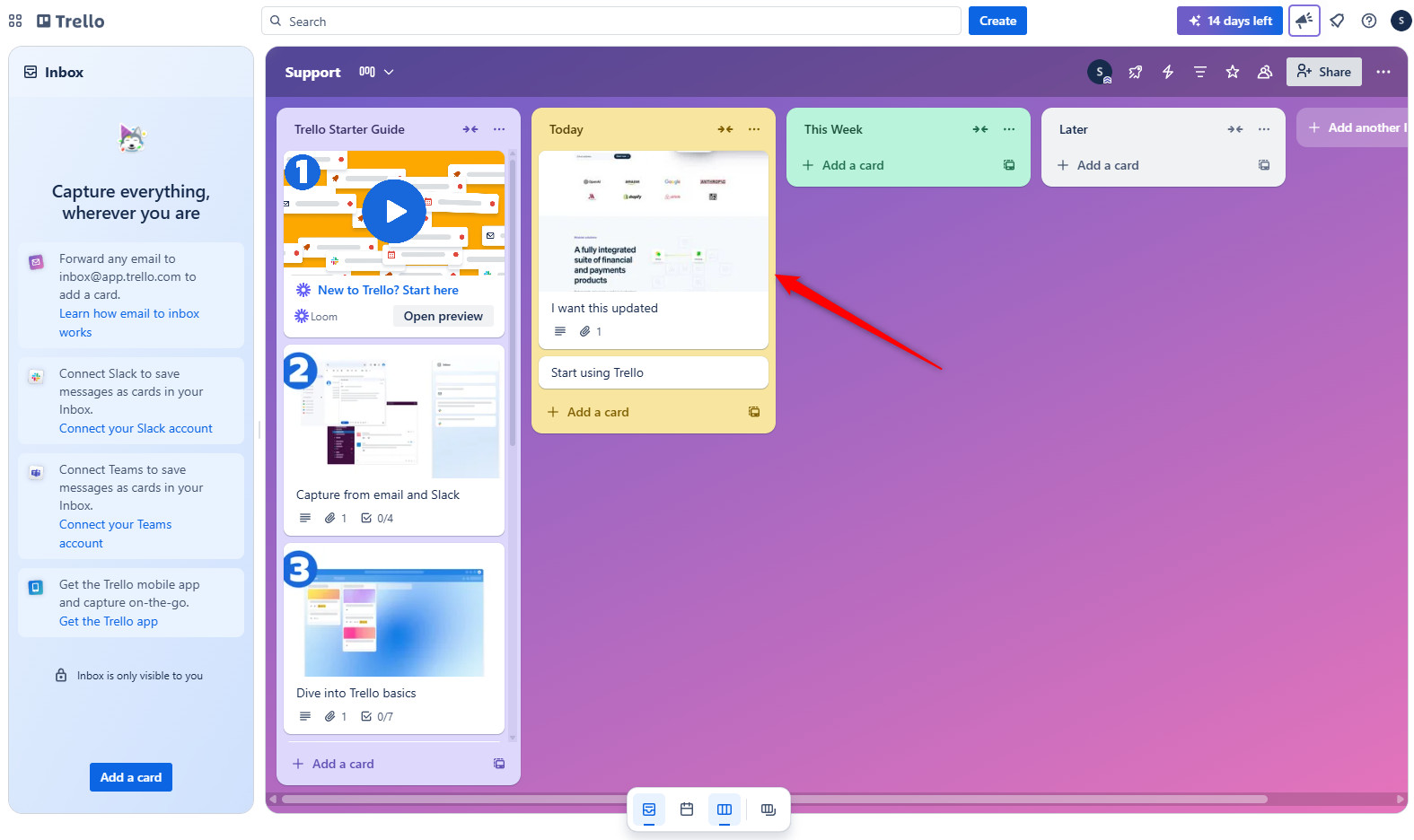 - Navigate to the Trello board and list you configured.