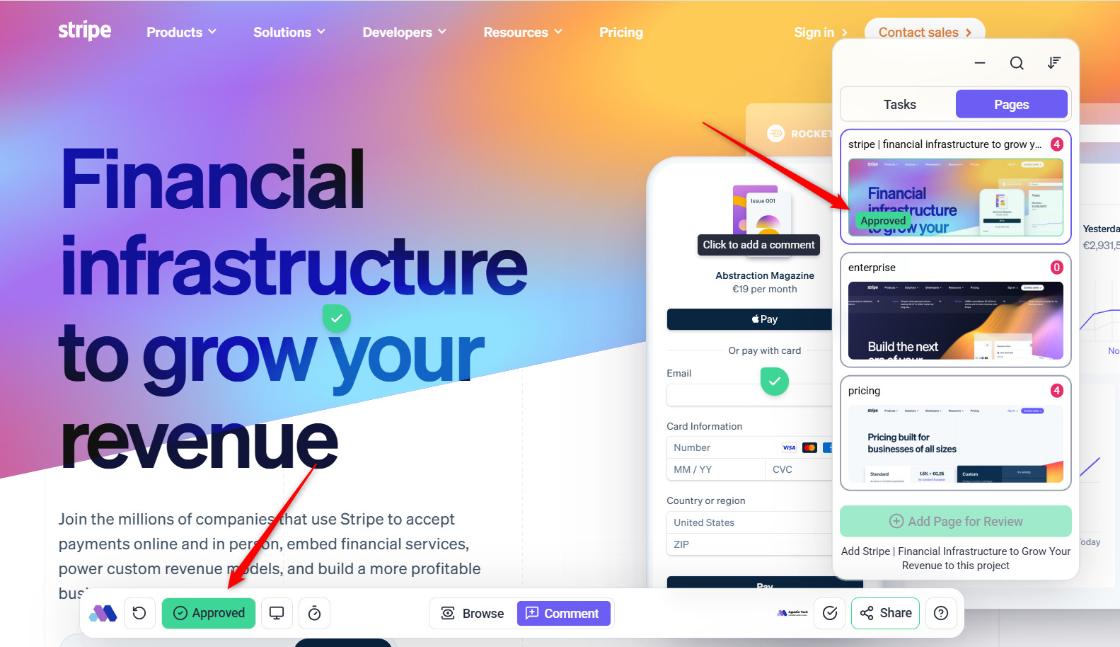 Before approving a page, you need to navigate to the Page Approval section within Atarim’s URL Collaboration tool.