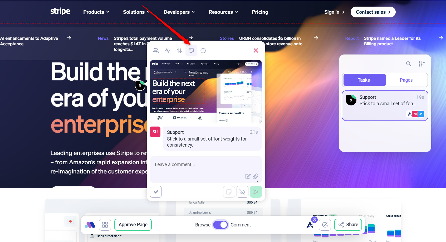 QA Engineers leave notes and bug reports directly on live pages—developers can see exactly where and what needs fixing.