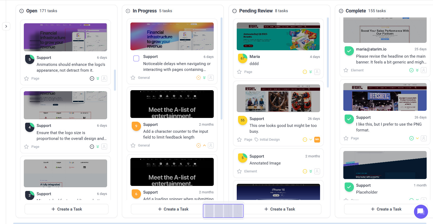 All visual comments instantly become tasks in Atarim’s task dashboard. Team members can track, assign, and prioritize them just like any other task.