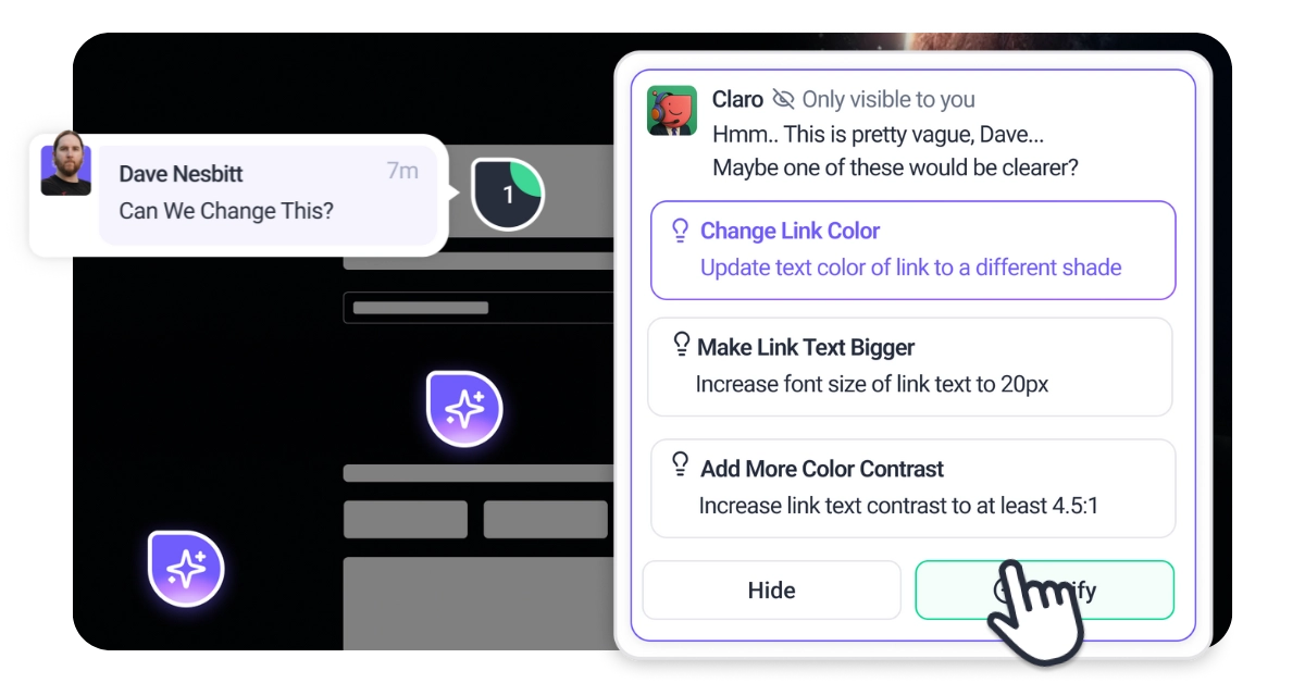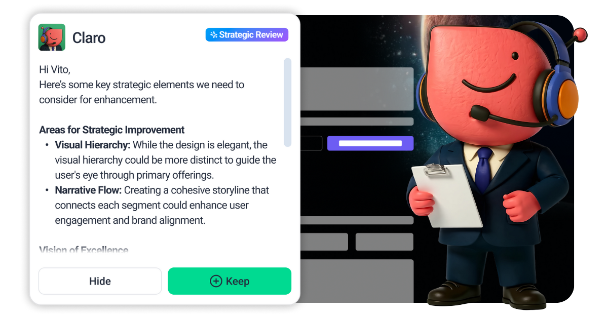 No more confusion over “make it pop” or “fix this.” Claro translates unclear feedback into actionable steps your team can actually use.